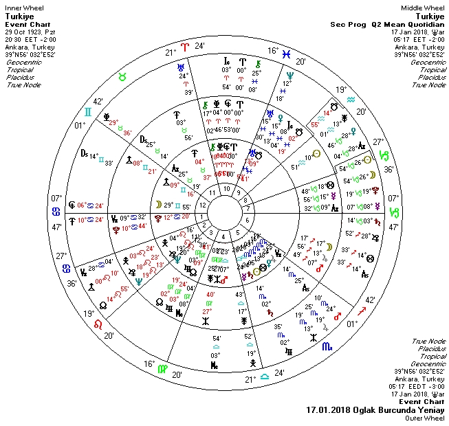 Yeniay ilerletilmiş Merkür, Satürn’ümüz üzerinde olurken, yine bu iki gezegenin natallerini ve Ay’ı da zorlamakta. Uluslararası davaları , anlaşmaları, kapalı kapılar ardında olan biteni daha bir gözler önüne sermekte. Gazete ve dergiler, basın mensupları, yayıncılar, yazarlar, düşün insanları, muhalefet, eğitimciler, akademisyenler, yabancılarla, yurtdışı ile çalışanlar, dini kurumlar bu gelişmelerden etkilenebilir. Venüs/Admetos’un daraltan, küçülten, sıkıştıran etkisini dış ilişkilerimizde, hukuksal ve finansal konularda hissedebiliriz. Bunlara yönelik sürpriz gelişmelerle karşılaşılabilir.