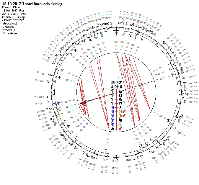19 Ekim günü saat 22:12 de Terazi burcunun 26°35′ derecesinde bir yeniay meydana gelecek. Aktif, girişimci , kimliğimizi öne çıkartmak, denge unsuru olmak amacındayız. Oldukça dışadönük, iletişim geliştirmeye yönelik , değişkenliklerin, kırılganlıkların , derinliklerin arasında güvence ararken, verim elde etmekte zorlanabiliriz.