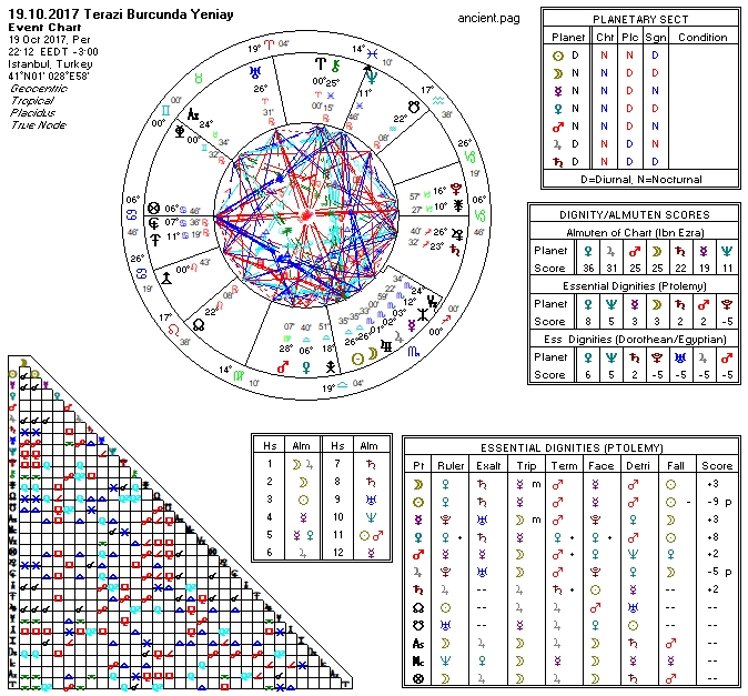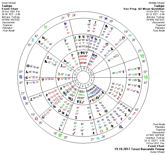 Yeniay Merkür ve Satürn üzerinde gerçekleşmekte. Dolayısıyla topraklarımızı, güvenliğimizi ilgilendiren konuların yanında, kontrol dışı durumlara, gizli düşmanlıklara, örgütlere, ilişkilere, vatan hainlerine, ajanlara , suikastlere, sendikalarla ilgili gelişmelere, uyuşturucu konusuna da dikkat çekmekte. Uluslararası ilişkilerdeki beklenmedik durumlar, bürokraside, yönetimlerin üst kademelerinde kırılganlıkları biraz daha arttırabilir. Toprak güvenliğimiz, güvenlik güçlerimizin durumu bölgenin de etkisiyle uzunca bir süre önemini koruyacak görünmekte. Bütün bu konularda olabilecek gelişmelerin yabancı ülkelerle yapılan anlaşmaları, borçlarımızı, kredi, faiz, vergi oranlarını etkileyeceğini ve bizlerin cebini biraz daha yoracağını öngörebiliriz . Yani yeni vergiler geliyor diyebiliriz. Yabancı ülkelerle yapılan her türlü idari, finansal anlaşmanın yanı sıra örtülü taahhütlerimiz, harcamalarımız da zorlamakta. Bunlara ordumuza ait harcamalar da eklenebilir. Spekülatif yatırım araçlarında, para piyasalarında ani hareketlenmeler bekleyebiliriz. Görevden ayrılmalar devam edebilir. İllegal yapılanmalar da dahil olmak üzere, üst düzey yönetimlerle ilgili beklenmedik gelişmeler olasıdır. Kasım’ın ilk haftası hukuksal , politik, finansal bazı gelişmeleri de beraberinde getirebilir. Aralık başında ise bunlarla ilgili başlanan girişimlerimlere ait hamleleri daha net görebiliriz.