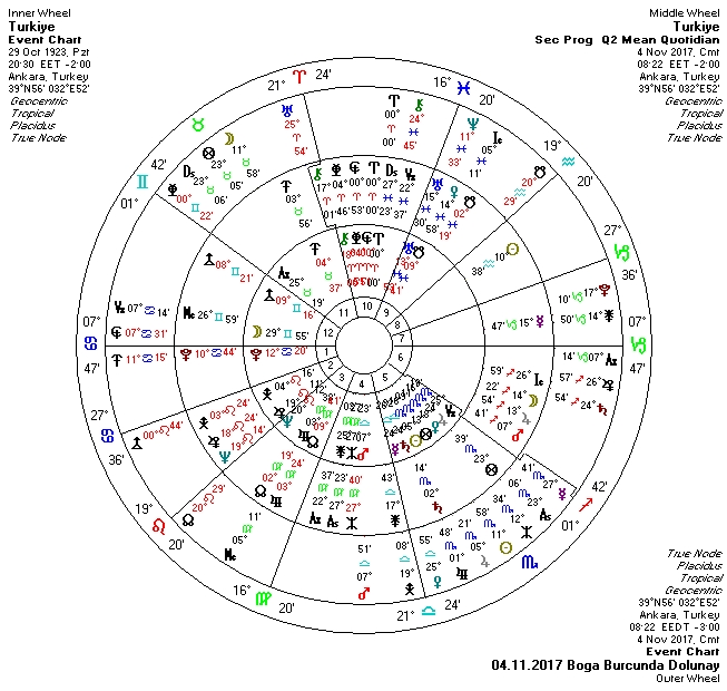 Boğa dolunayında ülkemiz de Mars döngüsünü yaşamakta. Bu bize hem yukarıda saydığım ana başlıklarda konuları, hem de yine toprak güvenliğimizi, ordumuzu, polisimizi, madenlerimizi, doğal kaynaklarımızı, muhalefet partilerini, beraberinde uluslararası davaları, anlaşmaları, dış ilişkilerimizi ve yanı sıra borçlarımızla da ilgili yeni bir döneme işaretçi. 2015 Kasım’ına gittiğimizde, o dönemde yaşanılan olayları, başlanılan ama resmi ya da daha ileri aşamaya geçmesinde kademe kademe gelinen durumları düşünebiliriz. Biraz daha yakına gelirsek 2017 Haziran’ında başlanmış durumlar için de belirginleşme, ortaya çıkma zamanı diyebiliriz. Yaz başı yaşanılan olaylarla ilgili gelişmeleri de bunlara dahil edebiliriz. Yine Mars’ın bu konumu ülke güvenliğimizin altını çizerken, halka yönelik olası provokatif durumları, eylemleri, saldırıları, kırılganlıklarımızı arttırıcı hamlelere karşı da dikkat edilmesi gerektiğini düşündürmekte.