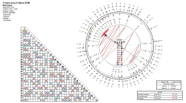 Sonuç olarak; bu tutulma öncü aksta ve ateş elementi yoğunluktadır. Gezegenlerin birbirlerine göre konumlanmasını düşündüğümüzde çok rahat etkiler taşımadığını söyleyebiliriz. Olayları daha açığa çıkartıcı, beklenmeyen durumlarla karşı karşıya kalmamızı sağlayıcı niteliktedir. Gündemimizde diplomasi, hakkı hukuk, ilişkiler olacaktır. Ülkemize göre 4-10 ana aksında olması ayrıca önem taşımaktadır. Bireysel olarak ise tutulmadan herkes kendi haritası doğrultusunda etkilenecek, hissedecektir. Değişimin kaçınılmaz, engellenemez ve hatta gelişimimiz için gerekli olduğunu düşünerek, sağduyuyu, uzlaşıyı göz ardı etmememiz dileğiyle .