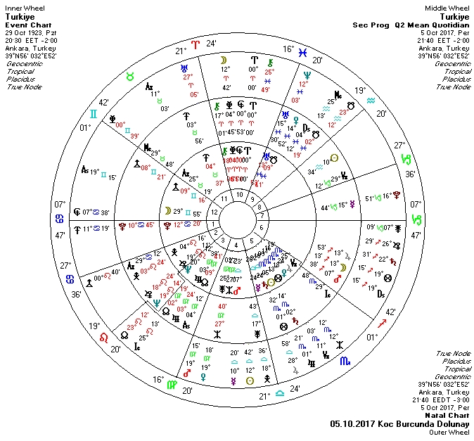 Ülkemiz açısından dikkat çekici bir dolunay bu. Pluto‘muz ve ilerletilmiş Merkür, Mars’ımız ile zorlandığını görmekteyiz. Bu çerçevede, komşularımızdaki olayların da etkisiyle diplomasinin, uluslararası anlaşmaların, davaların, rekabet ve açık düşmanlık durumlarının ülkemizi zorlaması karşısında, durumun değerlendirilmesi ve sonuçları olarak öngörebiliriz. Merkür’ün durumu, dolunay civarındaki açıklamaların, kararların, imzaların istenilen amaca ulaşmama riskine, kırılganlık arttırıcı durumlara işaret etmekte. Geçmiş yanılgılar ise daha zorlayıcı olabilir. İlerleyen günlerde, tüm bunların etkilerini finans piyasalarında, ülke ve dolayısıyla halkın ekonomik durumunda daha hissedebiliriz. Önce 24 Ekim’de Venüs, ardından 10 Kasım’da Mars, dolunayda Güneş’in bulunduğu noktayı tetikleyerek , bu tarihler ve civarı gelişen enerjileri daha belirgin hale getirecek.