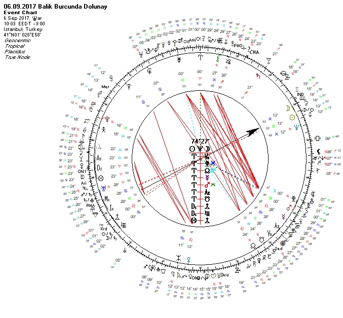 17 Ağustos’ta sosyal medya hesaplarımda yaptığım paylaşımda sınırımızda, yakınında olaylar patlak verebileceğini ve bunların bizi etkileyebileceğini, sonrasında topraklarımıza sıçrama olasılığını yazmıştım. 3 ayrı kartografik haritayla birlikte, bunun dikkat edilmesi gereken bir durum olduğundan bahsetmiştim. Tutulmanın uzun süre etkin olduğunu, bu olayların etkisini de 2018 ve sonrasında hissedebileceğimizi hatırlatmak isterim. O yüzden her zaman olduğu gibi, güvenliğimizin altını yine çizmek istiyorum. Agresyonu, provokayonları, terörü, savaşı vs. anlatan Mars, Eylül sonu Vulcanus’u tetikleyerek, ardından topraklarımızı anlatan 4.evimize giriş yapacak. Bizi rahatsız edecek durumlara sebep verebilir. Şimdi de 3.ev geçişinde bizim Mars’ımızı zorlamakta. 6 Eylül sürecine geri dönersek , Venüs’ün dolunayla konumlanmış zorlayıcı açısını görmekteyiz. Bu da olası durumların halkın cebine, ülke ekonomimize, finans sektörüne, ulusal kaynaklarımıza ve ticaretimize olan etkisi diyebiliriz…