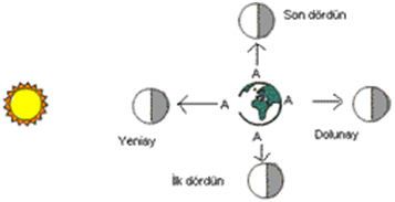Resimde görüldüğü gibi Dolunay evresinde Dünya, Güneş ile Ay’ın arasına girer ki bu her 29.5 günde bir tekrarlanmaktadır. Ay Düğümlerine belli yakınlıkta olduğunda Ay tutulması adını alır. Tutulma sırasında Dünya’nın gölgesi Ay’ın üzerine düşer ve bir süreliğine Ay kararır. Gerek Dünya-Güneş, gerekse Dünya-Ay yörüngelerinin eliptik olmasından, bu gök cisimlerinin birbirlerine göre konumlanmaları farklılık gösterir. Hızın da değişkenliğini düşündüğümüzde, ‘tam, parçalı, gölgeli’ olarak adlandırılan türde ve süresi değişen Ay tutulmaları gözlemlenir.