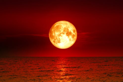 Tutulma sırasında her ne kadar Dünya, Ay ile Güneş’in arasına girip, ışığı kesse de atmosferi geçerek Ay’a varan ışık ışınları, onun tam karanlığa gömülmesini engeller. Bu noktada elektro manyetik tayftaki mavi ışık, kırmızı ışığa göre dalga boyu daha küçük, frekans aralığı daha büyük olduğundan dağılır. Böylece ortaya daha turuncu, kırmızımsı bir Ay görüntüsü çıkar.