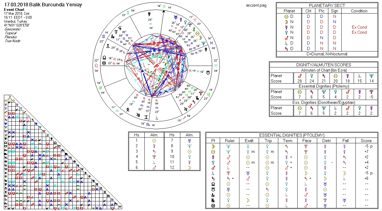 Balık yeniayında Güneş ve Ay’ın Matar ve Scheat ile etkileşimi görülmekte. Matar, tutku, hırs, önsezi ve aynı zamanda kötü muhakeme yeteneği ile de ilişkilendirilmiş. Scheat ise hızlı düşünmeye ve imkansızı denemeye cesaretini işaret ederken, aynı zamanda ciddi şanssızlıklar, hapis, cinayet, intihar, boğulmalar ile de ilişkilendirilmiş. Burada motorlardan, sulardan kaynaklı tehlikelere de dikkat çekmek isterim! Yani bunlar hem ilişkilerimizde, hem de duygularımızda, bilinçaltımızda, bilinçli seçimlere yansımalarında dikkatli olmamız gereken açıklarımız.