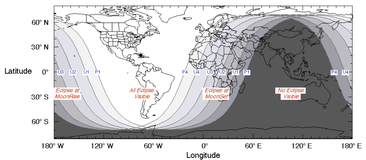 Tutulmanın tamamı Kuzey ve Güney Amerika’dan, Avrupa, Asya, Afrika, Pasific, Hint ve Atlas okyanuslarıdan, kuzey kutup bölgesinden gözlemlenebilecek.