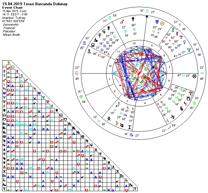 Dolunay Merkür ve Satürn’ün Güneş ile yaptığı orta noktalar üzerinde meydana gelmekte. Parti yönetimleri, üst yöneticiler, diplomasi, hukukun uygulanırlığına yönelik gelişmeler dikkat çekmekte.Son günlerde yaşadığımız yoğun seçim atmosferinde hala belirsizlikler devam etmekte. Bu süreçte açıklanmamış sonuçlar belirtilecektir. Fakat itirazların, buna yönelik gelişmelerin biteceği anlamına gelmeyebilir. İptal ve yenilenme talebi gündemde olabilir. Haziran başı bizler yine yönetimlere yönelik konuları konuşabiliriz. Mayıs sonu, Haziran başı sert gelişmeleri, mücadeleleri işaret ediyor olabilir. Mars’ın 12.ev geçişi kapalı kapılar ardında, hedefe yönelik hummalı çalışmaları ifade ederken, aynı zamanda kontrol dışı olaylara, gizli düşmanlıklara da işaretçi. Vulcanus, Uranüs ve Gad etkileşimleri saldırı, patlama, geriden iç agresyonun körüklenmesi olasılığına karşı tedbiri gerektirebilir. Burada yine güvenliğin altını çizmek isterim. Bu durum şirketler içinden de aynı şekilde gizli düşmanlıkları körüklerken, geri plandaki ödemelerini de arttırabilir. Dolunay, af konusu ile birlikte muhalif siyasetçi, düşün insanı, gazeteci, yazar tutukluluklarına da işaret etmekte. Para piyasalarında, borsada spekülatif hareketler beklenebilir. Ceplere biraz daha yük binebilir. NATO, BM gibi uluslararası ittifaklarımıza yönelik gelişmeler dikkat çekici olabilir. Yukarıda da belirttiğim gibi Terazi dolunayı Ocak ayı içinde gerçekleşen Güneş ve Ay tutulmalarını da tetiklemekte. Dış ilişkilerde, anlaşmalarda, ortaklıklarda, açık düşmanlıklarda, diplomasideki gelişmeler ve ekonomik yansımalarını gözlemleyebiliriz. Konunun detaylarını ilgili linklerde bulabilirsiniz.