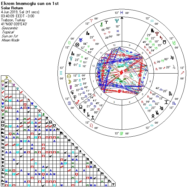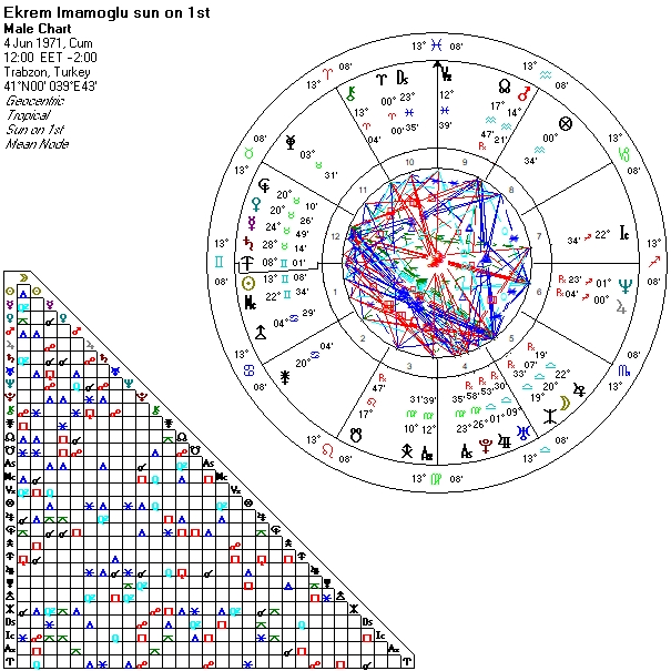 Sayın Ekrem İmamoğlu’nun 4 Haziran 1971 Akçaabat, Trabzon doğum bilgilerine sahibiz. Doğum saatini bilmediğimden haritasını Sun on 1st çıkartıyor ve natal yükselenini dikkate almadan konuşuyorum.