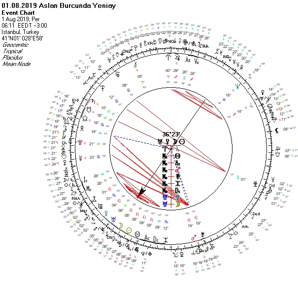 1 Ağustos günü saat 06:11 de Aslan burcunun 08°36´ derecesinde bir yeniay meydana gelecek. Ev sahibi Aslan, gözler önünde olma, kendini gösterme, ortaya koyma ve bunları yaparken de sırtının sıvazlanmasından, alkış almaktan hoşlanmayla ilgilidir. Gölgesinde ego, kibir, gösteriş, müsriflik taşır. Aslan burcu, liderleri, yöneticileri, tanınmış kişileri, sanatçıları, yönetmenleri, organizatörleri, eğlence, reklam sektörünü, mimarlık ve iç dekorasyonu, kuyumcuları temsil eder. Dolayısıyla doğasına has özellikleriyle birlikte, bu gruplara ilişkin gelişmeleri de daha belirgin görebiliriz.