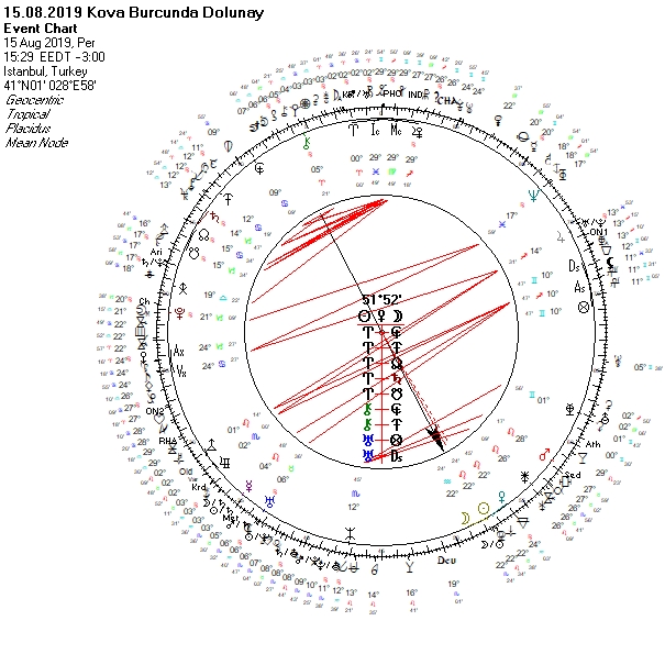 Ülkemizin Neptün’ü üzerinde gerçekleşirken, bir yandan da Jüpiter-Venüs ikilisi ile zorlanan bir dolunay sürecindeyiz. Burada gerek ülkemiz gerek şirketler açısından atılan adımların arkasındaki amacın müttefiklik kavramında, ortaklıklarda, rekabette aksayana dokunuş yaparak, iyileştirmeye çalışmak, kazanç elde etmeye çalışmak olduğunu söyleyebilirim. Fakat esas olarak gerçekçiliğini, faydası olup olmadığını, olduysa ne kadar fayda sağladığını 26 Aralık Oğlak tutulmasının etkileri ile birlikte gözlemleyebileceğiz. Uluslararası ilişkilerde önemli gelişmeleri işaret eden Kova dolunayı, diplomatik, ekonomik gelişmeleri ve beraberinde dengelenme çabasını anlatmakta. Uluslararası ilişkilerde tıkanmalar yaşanabilir. Uluslararası alanda davalar, para konuları, yaptırımlar, diplomasi kapalı kapılar ardında gündemde olabilir. Bazılarının uygulamasını Ekim ayı gibi görebiliriz. Aynı zamanda yine uluslararası konularla ilgili olarak bazı şeylerin amacının bize gösterildiğinden farklı olduğunu ve kontrol dışı olaylara sebep verebileceğini öngörebiliriz. Bu durumu sınırlarımızda yapılmak istenen güvenli koridor ile de ilişkilendirebiliriz. Sınırlarımız dışında askeri hareketlilik artabilir. Ordumuzu ilgilendiren durumlar söz konusu olabilir. Haritanın Mc si içeriden halkın güvenliğine de dikkati çekmekte. Borsada spekülatif dalgalanmalar yaşanabilir. Yeraltı ve yerüstü kaynaklarımız bu dolunayda da gündem olmaya devam edecek görünmekte. Kanunlar, satışlar, ruhsatlar konu olabilir. Yargıya intikal edebilir. İllegal yapılanmalara operasyon gelebilir. Basın yayın, haberleşme, iletişim, sosyal medya araçları, internet ile ilgili gelişmeler yaşanabilir. Tutukluluklar, af konusu gündeme yeniden gelebilir. Muhalefet partilerinin yöneticilerini, yönetimlerini ilgilendiren durumları gözlemleyebiliriz. Ulaşım, metrolar ve yeraltından giden taşımacılıkla ilgili problem yaşanabilir. Kazalara oldukça müsait . Özellikle bayram sürecinde trafikte dikkatli olunmalı. Zehirlenmelere, sıvılardan, gazlardan kaynaklı sorunlar, deniz kazaları olasıdır. Eğitim konularının oldukça öne çıkacağı bir süreç. Tarımla, çiftçilikle ilgili durumlar vurgulanabilir. Yenileştirmeye yönelik istemler görülebilir. Bu noktada asıl yenilenme Kasım ayı sonrası ve yeni yıl ile birlikte gelmeye başlayabilir. Madenciliğimiz ve doğal kaynaklarımızın kullanımına yönelik bazı hukuksal iyileştirmelerin başlaması da yine bu dönemden sonrasına rastlayabilir.