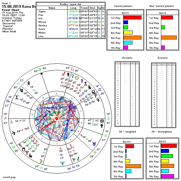 15 Ağustos günü saat 15:29 da Kova burcunun 22°24´ derecesinde bir dolunay meydana gelecek. Ev sahibi olan Kova toplumsal konularla, özgürlükler, devrimler, isyanlar, ayaklanmalarla, yeni, sıradışı olanla ve entelektüellikle ilişkilidir. Gölgesinde marjinallik, soğukluk ve öngörülmezlik bulunur. Aynı zamanda bilimle, yeni buluşlarla, mühendislikle, uzayla, havacılık ve uçaklarla, meteorolojiyle, elektrik-elektronikle, astronomiyle, astrolojiyle, radyolojiyle, psikoloji, psikiyatri, pedagoji, öğretmenlik, fotoğrafçılık ve iletişimle de ilişkilidir. Dolayısıyla saydığım özelliklerle birlikte, bu meslek gruplarına ilişkin gelişmeleri daha belirgin görebiliriz.