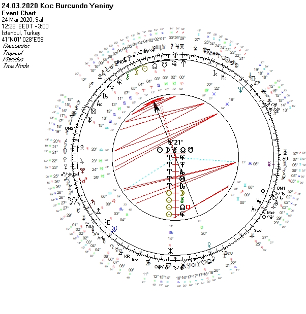 24 Mart günü saat 12:29 da Koç burcunun 04°12´ derecesinde bir yeniay meydana gelecek. Koç burcu cesaretliliği, girişimciliği, olayları başlatabilmesi, risk alabilmesiyle bilinir. Aynı zamanda gölgesinde huzursuzluk, öfke, bencillik, zorbalık, kavgacılık barındırır. Bu burç ordu, askerler, polisler, cerrahlar, dişçiler, sporcular, makinistler, tamirciler, itfaiyeciler, kasaplar, marangozlar, metalle çalışanları, demir-çelik sektörü, savaş malzemeleri ile ilgilidir. Dolayısıyla dolunay sürecinde yukarıda saydığım Koç özellikleriyle birlikte, bu gruplara ait gelişmeleri de daha belirgin gözlemleyebiliriz.