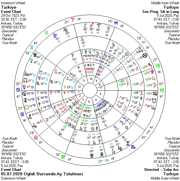 Tutulma ülkemiz haritasının Mars’ı üzerinde olmakta ve güvenlik konularını işaret etmekte. Bu dönemde güvenlik güçlerimizle ilgili konular oldukça öne çıkabilir. Yeni operasyonlar olabileceği gibi içeride halkı da ilgilendirebilecek, zorlayabilecek gelişmeler olasıdır. Bu noktada kargaşaya, teröre, suikaste, güvenliği dikkat etmekte fayda olabilir. Açık düşmanlıklarla karşı karşıya kalabiliriz. Diplomasinin rahat akmayacağı ya da kapalı kapılar ardında yürütüleceği görünen bu dönemde başka ülkelerle ilişkilerde, finansal anlaşmalarda ki bunlar hem borçlanmayı hem de savunma sanayini ilgilendiren durumlar olabilir, şartlar beklendiği gibi olmayabilir. Konumunda otorite olanların davaları, eski görüşmeleri, anlaşmaları gündem olabilir. Tutulma siyasi arenadaki hareketliliği de arttırmakta. Partiler arası geçişler hız kazanabileceği gibi bu hareketlilik konumunda otorite olanlarla ilgili değişimlere, yönetimlere de yansıyabilir. İllegal yapılanmalar ve bunlarla ilgili gelişmeler görülebilir. Bankaları, finans kurumlarını ilgilendiren beklenmedik durumlar yaşanabilir. Kredi, vergi, sigorta vs oranlarında değişimler beklenebilir. Corona salgını devam ederken hastaneler, halkın sağlığı gündemimizden düşecek görünmemekte. Tedbirleri gevşetmemekte fayda olabilir. Zira sonbaharla vaka sayısında daha da artış gözlemlenebilir ki bu harita sağlık sektörünün desteğe ihtiyacını da bizlere göstermekte. Tutulma yer hareketlerindeki artışı da tetikleyebilir. Doğu Akdeniz, doğalgaz, petrol konuları, Libya ve Mısır ile oluşabilecek durumlar dikkati çekmeye devam edebilir. Yunanistan ile yapılan eski görüşmeler, anlaşmalar, haberler gündemi etkileyebilir.