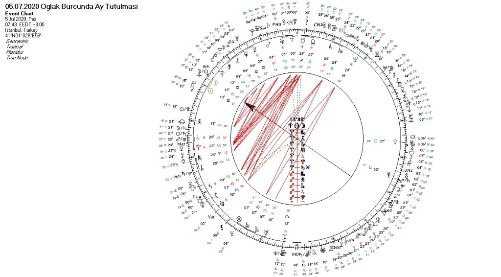 5 Temmuz’da Oğlak burcunda meydana gelecek Ay tutulmasında dış ilişkilerimiz, uluslararası anlaşmalar, hukuki konular, müttefiklik ve düşmanlıkları ilgilendiren gelişmeler, iç işlerimiz, halkı ilgilendiren gelişmeler, güvenlik konuları ve bunların ekonomiye, siyasete yansımaları ana konu başlıkları olarak dikkati çekmekte. Şirketler açısından baktığımızda ise rekabet güçlerinin, ortaklıkların test edildiği, hukuksal konuların görülebileceği, kimliklerini ilgilendiren gelişmelerin öne çıkabileceğini görmekteyiz.