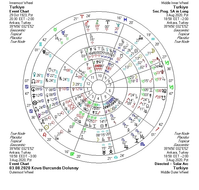 Dolunay, ülkemizin ilerletilmiş Güneş’i üzerinde meydana gelirken finansal konulara, bunların idaresine ve idarecilerine de dikkati çekmekte. Bu süreçte kredilerde, fazilerde, vergilerde değişim görülebilir. Bankalar, finans kurumları global şartların derin depresyona evrilmesinden ötürü, mali yükümlülüklerin altında daha zorlanmaya başlayabilir. Şirket satışları, ortaklık yapılarının değişimleri gözlenebilir. Bu durum Kasım ortasında iyice belirginleşebilir. Yine bu dönemde işsizlik rakamları oldukça dikkati çekebilir. Borç bulmak, borçlanabilmek ve ödeme kapasiteleri düşebilir. Borsada, para piyasalarında ani dalgalanmalar görülebilir. Konumunda otorite olanlarda, üst düzey yöneticilerde, yönetim kurullarında sürpriz değişimler yaşanabilir. Bu dönemde diplomasiyi dengede yürütmek kolay olmayabilir. Kapalı kapılar ardında gelişebilecek olaylar bazı konuların yeniden ele alınmasına ya da tamamlanmasına yol açabilir. Güvenlik konularımız önemini korurken içeride de tansiyon yükselebilir. Dışarıdan kaynaklı düşmanlıklara, patlamalara, yangınlara açık bir süreç. Nato ile ilişkiler dikkati çekebilir. Yine bu süreçte dikkati çekecek diğer iki konudan birisi Libya, Mısır, Rusya çerçevesindeki ilişkiler. Diğeri ise Kıbrıs, Doğu Akdeniz doğal gaz arama bölgesinde gelişebilecek sürpriz durumlar. Kova dolunayında iletişime yönelik yasaklarla ilgili gelişmeleri de gözlemleyebiliriz. Operasyonlar devam edebilir. Partiler arası değişimler meclis aritmetiğine yansıyabilir. Hava ve deniz yollarına yönelik problemler, kazalar yaşanabilir. Deprem beklenebilir. Eğitim, gençler, çocuklar, eğlence, sanat, spor yerleri, açık alanlar, parklar, bahçelerle ilgili gelişmeleri duyabiliriz.