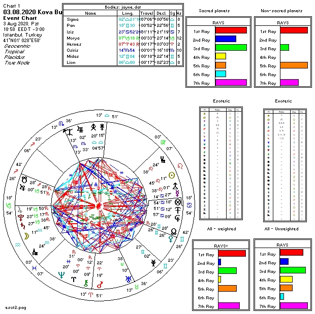 3 Ağustos günü saat 18:58 de Kova burcunun 11°45´ derecesinde bir dolunay meydana gelecek. Kova devrimler, özgürlükler, isyanlar, toplumsal konularla, entelektüellikle, sıra dışı ve yeni olanla, bilimle ilişkilidir. Gölgesinde marjinallik, soğukluk ve öngörülmezlik bulunur. Aynı zamanda bilimle, yeni buluşlarla, mühendislikle, uzayla, havacılık ve uçaklarla, meteorolojiyle, elektrik-elektronikle, astronomiyle, astrolojiyle, radyolojiyle, psikoloji, psikiyatri, pedagoji, öğretmenlik, fotoğrafçılık ve iletişimle de ilişkilendirilir. Dolayısıyla dolunay sürecinde saydığım özelliklerle birlikte, bu meslek gruplarına ilişkin gelişmeleri daha belirgin görebiliriz.