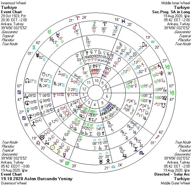 Aslan yeniayı yakın komşularla ilişkilere, Doğu Akdeniz, Kıbrıs ve petrol arama faaliyetleri ile ilgili gelişmelerin yanı sıra Yunanistan, Libya, Mısır ve ABD’nin bölgedeki faaliyetlerine dikkati çekebilir. Ülkemizin arama yaptığı bölgenin sınırları ile ilgili gelişmeler gündeme gelebilir. Anlaşmazlıkların arkasında bir başka ülkenin de katkısı olabilir. Yeniayın ülkemiz ilerletilmiş Jüpiter ve Neptün’üne yaptığı zorlayıcı açıyı dikkate alınca, sonrasında hedeften sapma olmaması için görünenin ardına bir kere daha bakmayı, dost görünenlerin kurbanı olmamayı işaret etmekte. Diplomaside dengelenme düşünüldüğü kadar kolay olmayabilir. Çözüme giden yol tıkanabilir. Ortam sıcaklığı kolay yükselebilir. Bu durum şirketler açısından gerek ortaklık yapılarına gerek piyasa rekabet şartlarına da yansıyabilir. Ordumuzun, güvenliğimizin yine dikkati çektiği bir dönem. Meclis gündemine Nato ile ilişkilerimiz, yabancılarla yapılan anlaşmalar oturabilir. Bu noktada dış borçlarımız konu olabilir. Aynı şekilde bankaları, finansal yapıyı, kurumları etkileyebilecek durumlar halkın yükünü arttırabilir. İthal ürünlerin vergi oranlarında, fiyatlandırmalarında değişimler olasıdır. Covid 19 ile bağlantılı olarak eğitimle, okullarla ilgili yeni açıklama gelebilir. Günlük hayata yeniden bazı düzenlemeler, kısıtlamalar dahil olabilir. Meclis aritmetiğini etkileyecek değişimleri konuşmaya devam edebiliriz. Konumunda otorite olan yöneticilerle ilgili hukuksal konular gündeme gelebilir ki bunlar finansal konularla ve yurtdışı ile de bağlantılı olabilir. Operasyonlar devam edebilir. Bu süreçte düşün insanları, yazarlar, gazeteciler, muhalefet partileri mensupları ile ilgili gelişmeler olasıdır. Dilerim şiddet içeren durumlar yaşanmaz. Para piyasalarında, borsada hareketlilik dikkati çekebilir. Ulusal servetimiz, uzun dönemli kalkınma planlarındaki hedef değişimlerini konuşabiliriz. Bu yeniay tüm dünyada finansal krize vurgu yaparken, işten çıkartılmalara, her türlü bozulmaya, rüşvete vs de vurgu yapmakta. İlerleyen günlerde bu konuların da iyice bizleri meşgul ettiğini görebiliriz. Yer hareketliliği devam edebilir. Yangınların, patlamaların, kazaların ne yazık ki yine fazlalaşabileceği bir dönemdeyiz. Taşımacılık, ulaşım, yeraltı ulaşımı, internet hatları da bu dönemde sıkıntılar yaşatabilir.