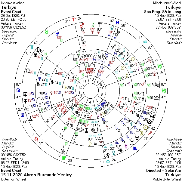 Yeniay, ülkemiz haritasında Jüpiter’in üzerinde meydana gelmekte. Dolayısıyla diplomasiyi, uluslararası ilişkileri, hükümeti, üst yönetimleri, yöneticileri, finansal ve hukuki konuları  ilgilendiren gelişmeleri işaret etmekte. Üst yönetimlerinde değişimler olasıdır. Bankalar ve üst yöneticilere ait devam eden davalar gündemde kalabilir. Bankalara, finans kurumlarına yönelik yeni düzenlemeler gelebilir. Ortaklık yapılarını ilgilendiren gelişmeler olasıdır. Dileyelim olmasın ama banka batıkları yaşanabilir. Bu noktada kredi, borç yapılandırmalarını, maaş ödemeleri de dönemin zorlukları arasında görülmekte. Konumunda otorite olanlarla, üst yöneticilerle, toplumda tanınmış kişilerle ilgili beklenmedik gelişmeler konu olabilir. Anlaşmalar, sözleşmeler, manipülasyona, muğlaklıklara, yön kaybı yaşatabilecek durumlara açık olduğundan dikkatli olmak faydalı olabilir. Operasyonlar hız kazanabilir. Mars’ın sert görünümleri devam ederken hem gizli hem açık düşmanlıklara karşı güvenliğimizi önemsemeliyiz. Bu süreçte uluslararası ilişkilerdeki denge ve sınırlarımız, komşularla ilişkilerimiz, Kıbrıs, doğu Akdeniz ve doğalgaz arama çalışmalarımız yine öne çıkmakta. Tarikatlar, derin yapılanmalar yine konuşulacak görünmekte. İletişim, internet problemleri, kazalar yaşanabilir. Kamu yatırımlarına yönelik satışlar, bunların finansal ve hukuksal durumları ile uğraşılabilir. Sendikalar ve sendika yöneticileri  ile ilgili gelişmeler dikkat çekebilir. Muhalefeti, gazeteci, yazar, düşün insanlarını kapsayan davalar, tutukluluklarla ilgili gelişmeler Akrep yeniayında da devam edebilir. Deprem olasıdır. Corona ve toplum sağlığını ilgilendiren gelişmeler dünya gibi bizi de zorlamaya devam ediyor. Maalesef hastanelerdeki yoğunluk artabilir. Bu durum çocukların eğitiminde de yeni kararları getirebilir. Okullara ara verilmesi gündeme gelebilir.