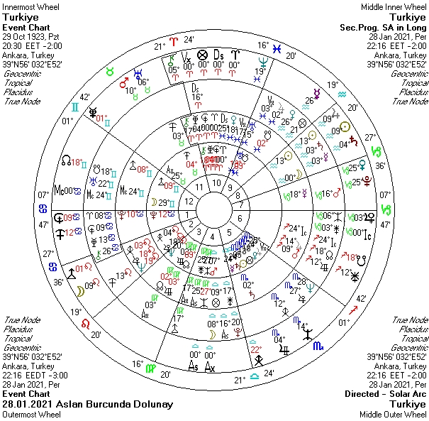 Aslan dolunay üst düzeyde ve göz önünde olup, hemen çok kişinin bildiği, konusunun önünde olanları, yöneticileri, tanınmış kişileri ve bunların durumlarını ilgilendirmekte. Dolunay gündemi kontrol dışı olayları, düşmanlıkları gündeme getirebilir ve suikast, saldırı gibi nahoş olaylar meydana gelebilir. Onlarla ilgili beklenmedik türlü durumlar oluşabilir. Meclisi, milletvekillerini, belediyeleri, belediye başkanlarını ilgilendiren beklenmedik gelişmeler yaşanabilir. NATO, AB gibi uluslararası kuruluşlarla şartlar zorlayabilir. Silah anlaşmaları gündemde kalmaya devam edebilir. Borçluluğumuz ve süregelen şartlara yönelik düzenlemeler, anlaşmalar konu olabilir. Para piyasalarında ani hareketlenmeler yaşanabilir. Bankalar, finans kuruluşları, şirketler açısından zor bir süreç. İflaslar olasıdır. Halk, halkın durumu ile gelişmeler daha önemli hale gelebilir. Kazalara, havayolları sorunlarına açık bir süreç. Köprülerle, madenlerle ilgili sorunlar mümkündür. Depremlere, doğal afetlere açık bir süreç. Anayasa konusu partiler arasında yeniden gündeme gelebilir.