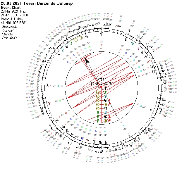 28 Mart günü Terazi burcunda meydana gelecek dolunayda topraklarımız, güvenliğimizi ilgilendiren gelişmeler, iktidar ve muhalefet partileri, madenlerimiz, doğal kaynaklarımız, tarım ve çiftçilerimiz, inşaat ve emlak sektörü, konumunda otorite olan yöneticiler, liderler, ceo lar, genel müdürler, tanınmış kişiler, ülkece prestijimiz, mahkemeler, ordumuz ve polisimiz ana konu başlıkları olarak görülmekte. Şirketler açısından baktığımızda ise çalışanlarından, genel müdürlerine, ceo larına, gayrimenkullerinden itibarlarına vurgu yapan gelişmeler yaşanabilir.