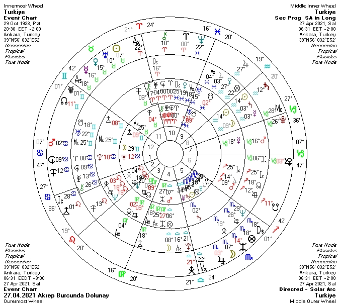 Ülkemizin Güneş’inin üzerinde gerçekleşen bu dolunay konumunda otorite olanlarla, üst düzey yöneticilerle olan gelişmelerin, değişikliklerin işaretçisi. Meclisi, milletvekillerini ilgilendiren gelişmeler yaşanabilir. Aynı zamanda belediyeler, belediye başkanları da Akrep dolunayının etkisi altında görünmekteler. NATO, AB ilişkileri gündemi işgal edebilir. Uluslararası ilişkilerde davalar, para konuları gündeme gelebilir. İlişkilerde kırılganlık arttırıcı etkilerini hissedebiliriz. S400 ler, silah anlaşmalarınında önümüze konulan engellerin yanısıra borçluluğumuzu, kredi alabilmemizi ilgilendiren durumlarda çözüme gitmek kolay olmayabilir. Para piyasalarında , spekülatif yatırım araçlarında dalgalanmalar olasıdır. Bankalarla, hazine ve maliyeyle, finans kurumlarıyla ilgili gelişmeler, değişimler görülebilir. Coronadan ötürü hastanelerdeki yoğunluk devam edebilir. Yer hareketliliği devam edebilir. 12.evden geçmeye devam eden Mars bir yandan perde arkasındaki hareketliliğin diğer yandan arkamızdan çevrilen işlerin işaretçisi. Bu noktada güvenliğimiz öne çıkmakta. Çocuklarımızı, eğitimlerini, sınavlarını ilgilendiren açıklamalar gelebilir. ABD’nin elinin üzerimizde olduğunu ve baskın yönlendirme yapmaya çalıştığını görebiliriz.Yunanistan ve Ukrayna’nın yanı sıra Kıbrıs da yine gündemimizi belirleyecek görünmekte.