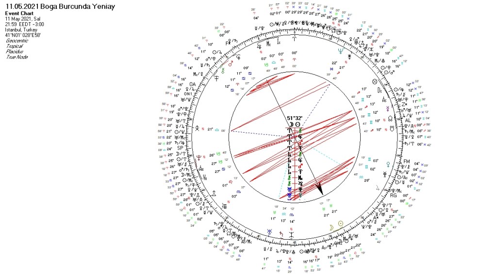 11 Mayıs günü saat 21:59 da Boğa burcunun 21°17′ derecesinde bir yeniay meydana gelecek. Bu burç maddi manevi materyale önem verir ve sahip olduklarına sıkıca bağlıdır. Değişime direnç gösterir. Huzuru, güvenlik alanı tehdit edildiğinde ise öfkesini ortaya koyar. Kadınlara yönelik çalışanlar, diplomatlar, sanatçılar, mimarlar, dekoratörler, tasarımcılar, galericiler, mücevherciler, kumaşçılar, terziler, modacılar, güzellik merkezleri, kuaförler, parfümericiler ve finansçılarla ilişkilidir. Dolayısıyla yeniay sürecinde Boğa özellikleri ile birlikte, bu gruplara ait gelişmeleri de daha belirgin gözlemleyebiliriz.