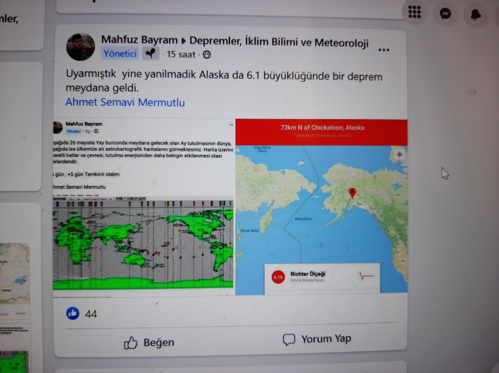 Yukarıda bahsettiğim kaynak gösterimi yapılmadan, intihale yönelik bir sorunu da ben yaşamaktayım. Yıllardır sizlere hazırlamakta olduğum astrokartografik haritalar, deprem, iklim bilimi ve meteoroloji ile ilgili olduğunu iddia eden bir site tarafından 19 Mart tarihinden bu yanan kendilerinin gibi kullanılmış. Üstüne yorumlar yapılmış. Bu site ve yöneticilerine hiçbir şekilde izin vermediğim gibi yanlış yolla uygulama içinde oldukları içinde bundan sonra da vermeyeceğimi beyan ederim. Ekran görüntülerini sosyal medya hesaplarımda paylaştım. Merkür retrosundan sonra da EGM siber suçlara ileteceğim. Ama bir görüntüyü de hepimizin takip ettiğimiz grup ya da kişileri daha iyi tanıyabilmemiz açısından örnek teşkil etmesi için aşağıya bu seferlik paylaşıyorum. Kirliliğin yoğun olduğu bu dönemde bilgilenmek istediğimiz yerlerde paylaşım yapanları iyi araştıralım ve birbirimizden yaptığımız paylaşımlarda kaynağımızı da eklemeyi unutmayalım.