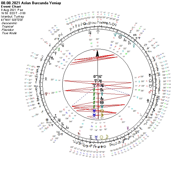 8 Ağustos günü saat 16:50’de Aslan burcunun 16°14’ derecesinde yeniay meydana gelecek. Ev sahipliğini yapacak olan Aslan burcu sahne önünde olmak, kendini göstermekle alakalıdır. Gölgesinde ego, kibir, gösteriş, müsriflik vardır. Liderleri, yöneticileri, tanınmış kişileri, sanatçıları, yönetmenleri, organizatörleri, eğlence, reklam sektörünü, mimarlık ve iç dekorasyonu, kuyumcuları temsil eder. Dolayısıyla yeniay doğasına has özellikleriyle birlikte, bu gruplara ilişkin gelişmeleri de daha belirgin görebiliriz.