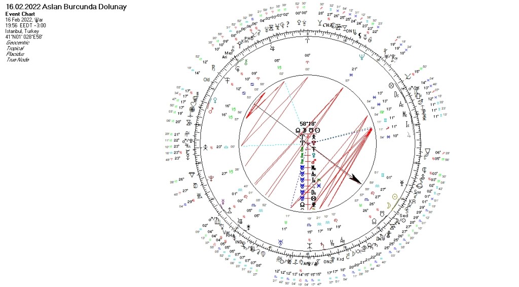 16 Şubat günü saat 19:56’da Aslan burcunun 27°59’ derecesinde dolunay meydana gelecek. Ev sahibi Aslan burcu sahnede olmak, kendini göstermekle ilgilidir. Gölgesinde ego, kibir, gösteriş, müsriflik vardır. Liderleri, yöneticileri, tanınmış kişileri, sanatçıları, yönetmenleri, organizatörleri, eğlence, reklam sektörünü, mimarlık ve iç dekorasyonu, kuyumcuları temsil eder. Dolayısıyla dolunay sürecinde Aslan burcunun doğasına has özellikleri ve bu gruplara ilişkin gelişmeleri daha belirgin görebiliriz.