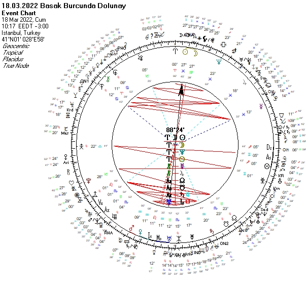 Ülke haritamız açısından baktığımızda, Başak dolunayı tüm siyaseti ve ekonomiyi, bunların halka yansımalarını ilgilendiriyor görünmekte. Gıda, tarım ürünleri fiyatlarındaki değişim devam edebilir. Yaşanan koşullarında etkisiyle dünya geneli gıda kıtlığı görülebilir. Başak dolunayı topraklarımızı, tarımla ve gıda stokumuzla ilgili göstergeleri gözden geçirerek, dışa bağımlılıktan kurtulmak için radikal adımların masaya yatırılmasının önemine işaret etmekte. Rusya-Ukrayna savaşında ülkemiz önemli rol üstlenebilir. Fakat bazı durumlar yeterince net olmayabilir. Bu noktada koşulların daha sonra bizi zorlama olasılığını eklemek isterim. Uluslararası ilişkilerde birbirini anlama zorluğu, sıkıntılara yol açabilir. Muhalefet ve hükümet arasında görüşmeler dikkati çekebilir. Kapalı kapılar ardındaki durumlar beraberinde beklenmedik gelişmeleri hareketlendirebilir. Bu süreçte iç güvenliğin yanı sıra hava koşullarının yaratabileceği problemlere karşı tedbir gerekebilir. Madenlerimizle ilgili gelişmeler yaşanabilir. Olası nahoş durumlara karşı madencilerimizin güvenlik tedbirleri gözden geçirmek faydalı olabilir. Ekonominin dikkati çektiği süreçte, fiyatlar enflasyonist etkilerle değişmeye devam edebilir. Borsa, spekülatif yatırım araçlarında dalgalanmalar yaşanabilir. Konumunda otorite olanlarla ilgili değişimler mümkündür. Maliye Bakanlığı, Bist, Merkez Bankası gibi mali, finansal yapıları ilgilendiren gelişmeler olasıdır. Sendikalarla ve savunma sanayine yönelik konular dikkati çekebilir. Başak dolunayı, 19 Kasım’da Boğa burcunda yaşanılan Ay tutulmasının etkilerini ülkemiz adına da açığa çıkartacak görünmekte.