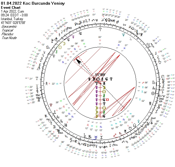 1 Nisan günü saat 09:24 de Koç burcunun 11°30’ derecesinde bir yeniay meydana gelecek. Yeniayın ev sahibi Koç cesur, rekabete açık, risk alan, girişimci yapısının yanı sıra gölgesinde benmerkezcilik,huzursuzluk, öfke, kavgacılık barındırır. Bu burç ordu, askerler, polisler, cerrahlar, dişçiler, sporcular, makinistler, tamirciler, itfaiyeciler, kasaplar, marangozlar, metalle çalışanları, demir-çelik sektörü, savaş malzemeleri ile ilgilidir. Dolayısıyla yeniay sürecinde yukarıda saydığım Koç özellikleriyle birlikte, bu gruplara ait gelişmeleri de daha belirgin gözlemleyebiliriz.