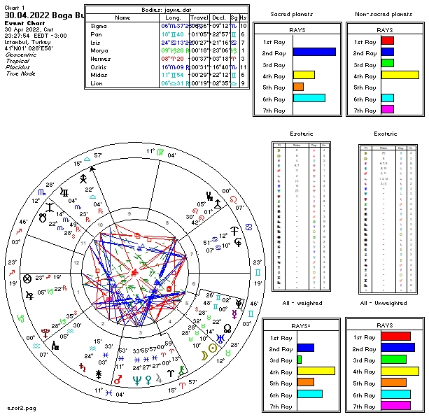 Yükselende bilgi, büyüme, gelişme, hayat felsefesi geliştirmeyle bilinen ve gölgesinde abartı, fanatizm barındıran Yay burcu bulunmakta. Yükselen derecesinde Lesath ve Aculeus sabit yıldızlarının etkisini görmekteyiz. Bu yıldızla ameliyatlarla, felaketlerle, sözlü ya da fiziksel saldırılarla ama bunlara dayanıp, güçlenerek çıkmayla ilişkilendirilir.