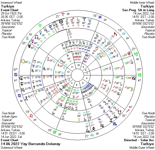 Dolunayla birlikte 16 Mayıs’ta Akrep burcunda gerçekleşen Ay tutulmasının etkileri tetiklenmekte. Gerek ekonomik, dış politik ve hukuksal konular, gerek NATO, AB gibi paktlarla ilişkilerimiz siyasi, hukuksal, askeri, finansal boyutuyla yeniden yapılandırmaları işaret etmekte. Bu konular 2022 Aralık ayı ile birlikte, Ocak sonu gibi yeni haliyle önümüze gelebilir.