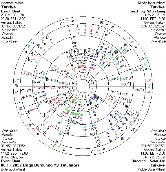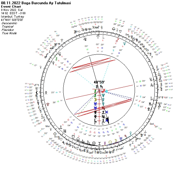 Boğa burcunda gerçekleşecek olan Ay tutulmasında meclis, belediyeler, yabancı devletlerle yapılmış anlaşmalar, NATO, BM, AB gibi paktlarla ilişkiler, borsa, diplomatlar, eğitim sistemi, gençler, çocuklar, sanatsal, sportif konular, eğlence hayatını ilgilendiren gelişmeler ana konu başlıkları olarak görülmekte. 8 Kasım’da meydana gelecek olan Ay tutulması ilerletilmiş Güneş’imizi etkilemekte. 28 Ekim 2023 günü yine Boğa burcunda meydana gelecek ve önemli değişimleri, dönüşümleri işaret eden tutulma ise natal Güneş’imizi etkileyecek. Yani süreç, birbirini takip eden önemli gelişmeleri anlatmakta. Meclis, vekiller, belediyeler, belediye başkanları, yerel yönetimler ve yöneticileri, liderler, üst düzey yöneticiler, diplomatlar ile ilgili ani gelişmeler yaşanabilir. Yurtdışı davalar, ele alınanın ardındaki faktör olarak görülebilir. Bazı yöneticilerin yetkinlikleri ile ilgili gelişmeler yaşanırken, liyakatlar gündem olabilir. NATO, AB gibi paktlarla ilişkilerimiz dikkati çekebilir. Terör, gizli düşmanlıklar, patlamalar, yangınlar, suikastler, girişimler olasıdır. Geçici sığınmacılar ülke gündemini etkileyebilir. Adalarla ilgili beklenmedik gelişmelere dikkat kesilebiliriz. Hapishaneler, grevler, uyuşturucu ile ilgili durumlar konu olabilir. Sıvılar, gazlar, petrokimya ürünleri kaynaklı sorunlar yaşanabilir. Deniz ve havayollarında problemler mümkündür. 2023’de afla ilgili gelişmeler beklenebilir. Anayasa ve federe yapı ile ilgili çalışmalar geri planda sürebilir. Dönem içinde yaşanacak gelişmeler halkı ve ekonomik durumu beraberinde etkilemekte. Gerek BIST gerekse New York borsası haritaları tutulmadan etkilenmekteler. Piyasalarda dalgalanmaları görebiliriz. Şirket karlılıklarında düşüşler, iflaslar görülebilir. Kalkınma planlarında şartları kontrolüyle bağlantılı değişimler görülebilir. Dünya geneli resesyonun oldukça hissedildiği bir dönem olacak diyebiliriz. Deprem olasıdır. Yeniden bir grizu faciası yaşamamak için tedbirlerin üzerinden bir kez daha geçmekte fayda olabilir. Putin’in Türkiye’nin gaz merkezi olmasına yönelik söylemlerinde harekete geçilmesinde aksamalar görülebilir ya da eylemler yeterince net olmayabilir.