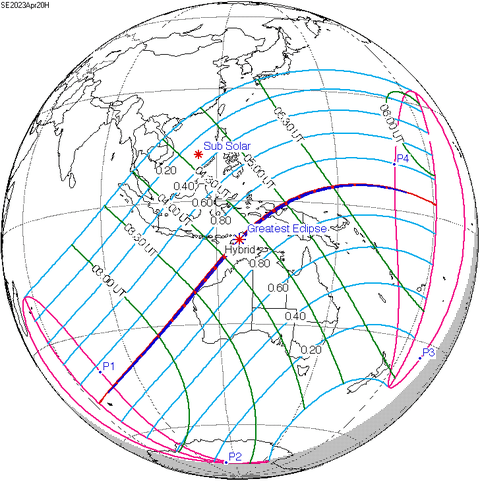 20 Nisan günü saat 07:12 de Koç burcunun 29°50’ derecesinde, tutulmanın bazı bölgelerde tam bazılarında ise parçalı, halkalı olarak gözlemleneceği hibrit Güneş tutulması meydana gelecek. Ve Güney Doğu Asya, Avustralya, Pasifik ve Hint Okyanusu bölgelerinde gözlemlenecek