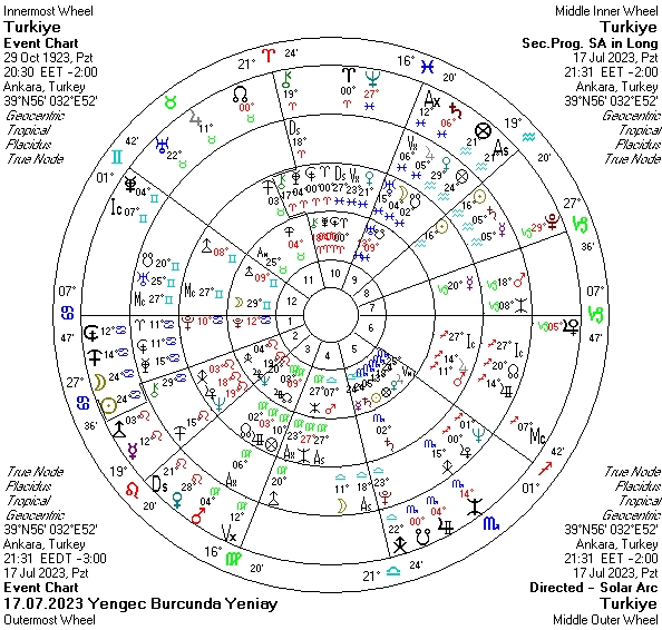 Ekonomiyi, halkın alım gücünü, vergi ödeyebilme kapasitesini oldukça etkileyen bir yeniay süreci diyebiliriz. Bankalara, finans piyasalarına yönelik kararlarla, düzenlemelerle acı reçete adına Pandora’nın Kutusu daha da açılıyor. Bu düzenlemeler borsayı, spekülatif yatırım araçlarını da kapsayabilir. Alım ve vergi ödeyebilme gücü düşebilir. İşsizlik ve kapanan firma rakamlarında artış gözlemlenebilir. İthalat ve ihracata, aynı zamanda gıdaya, barınma ihtiyacına yönelik düzenlemeler beklenebilir. Tahıl koridoru Anlaşması ile ilgili zorlayıcı durumlar olasıdır. İç turizmdeki hareketlilikte bayrama göre düşüş yaşanabilir. İç piyasadaki harcamalar yeniayla birlikte lüks arzusunu yine gösterse de sonrasında düşebilir. Kamu yatırımları, eğitim sistemine yönelik gelişmeler gündemi belirleyebilir. Anayasa çalışmaları, afla ilgili durumlar ve geçici sığınmacılar konu olabilir. Muhalefet kanadından yöneticiler, düşün insanları, gazeteciler ile ilgili gelişmeleri konuşabiliriz. HAARP ve onun gibi hitech uygulamalara karşı ülkemiz açısından dikkat etmek faydalı olabilir. Yer hareketliliği beklenebilir. Kıbrıs’la ilgili konulara dikkat kesilebiliriz. Rusya ile ilişkiler öne çıkarken, İngiltere ve ABD de şartların gerisindeki ülkeler olarak görülebilir.