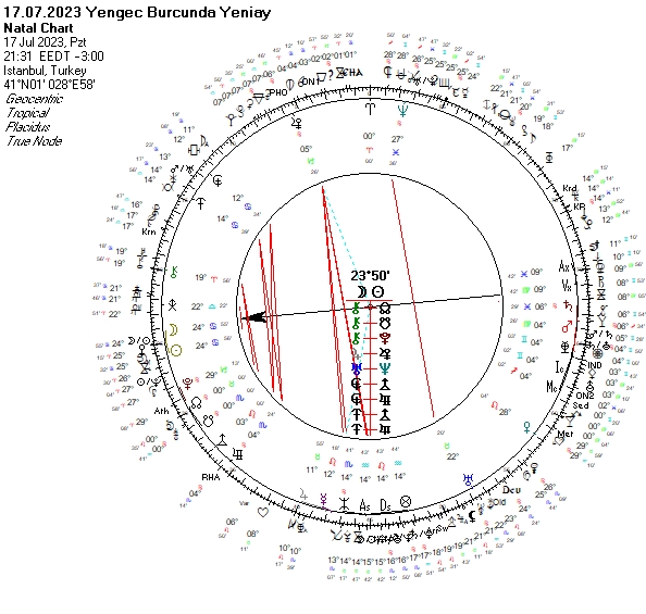 Yukarıda 17 Temmuz günü Yengeç burcunda yaşanacak yeniayın ülkemize ait astrokartografik haritasını görmektesiniz. Harita üzerinde işaretli hatlar ve çevresi, yeniay enerjisinden belirgin etkilenmesi olası yerlerdendir.