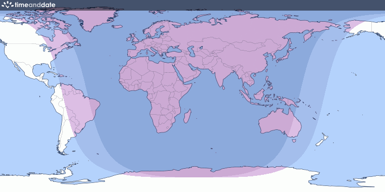 Tutulma Avrupa,Asya, Avustralya, Afrika, Kuzey Amerika, Güney Amerika’nın çoğunluğu, Atlas Okyanusu, Hint Okyanusu, kuzey ve güney kutup bölgelerinden gözlemlenebilecek.