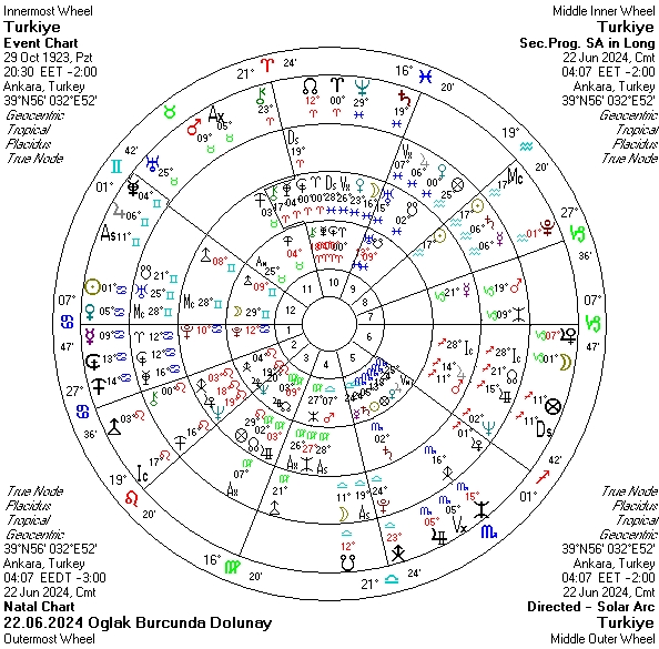 Ülkemizin Ay’ı üzerinde gerçekleşen ve Mars’ı ile sert görünüm yapan dolunay, halkı, refah düzeyine, ekonomiye, maliyeye bağlı bürokratik gelişmeleri, düzenlemeleri, içişlerini ilgilendiren durumları işaret etmekte. Diplomatik, hukuksal, finansal konular önemli görülmekte. Kapalı kapılar ardında yapılan görüşmeler, anlaşmalar ses getirebilir. Bizdeki üst düzey liderler, yöneticiler, yakın ülkelerin, komşuların üst yöneticileri, liderleri kapalı kapılar ardındaki gündemi belirleyebilir. Tanınmış kişilerin sağlık durumlarını, pozisyonlarını ilgilendiren konular yaşanabilir. Skandalları duyabiliriz. Tarikat, cemaat tipi yapılanmalar gündemdeki yerini koruyabilir. Tabandan tavan birtakım yeni düzenlemeler gelebilir. Burada son dönemde olduğu gibi mali konular, çalışan kesimin haklarına, sosyal güvenlik hizmetlerine yönelik konular dikkati çekebilir. Diğer ülkelerle yapılan anlaşmaların arka plan detaylarını öğrenebiliriz. Ve bunların baskılarını hissedebiliriz. Ordumuzu, polisimizi ilgilendiren, güvenliğimizle ilgili konular, operasyon söz konusu olabilir. Kazalara, yangınlara dikkat! Hayvancılığımız ve tarım, gıda stokumuz konuşulabilir. Toprakla ilgili her konu gündemimizde olacak diyebiliriz. Burada toprak satışlarından, toprak hareketliliğine, madenlere kadar geniş bir dilimi düşünebiliriz.