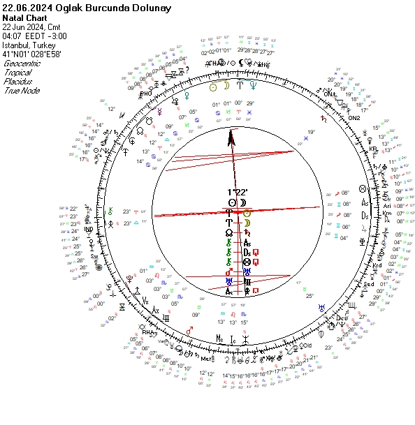 22 Haziran günü saat 04:07’de Oğlak burcunun 01°07’ derecesinde dolunay meydana gelecek. Dolunayın ev sahibi Oğlak ciddi, sorumluluk bilincinde, sabırlı, mantıklı, sistemli, düzen kurucudur. Gölgesinde kontrolcülük, duygu eksikliği, hesapçılık, melankoli görülür. Oğlak, devletle, politikacılarla, yöneticilerle, mühendislerle, bilim insanlarıyla, organizatörlerle, iş insanlarıyla, finansçılarla, hesap ve vergi uzmanlarıyla, tarihçilerle, arkeologlarla, inşaat, deri sektörü ile, kütüphanecilerle, arşivcilerle, antikacılarla, maden işçileri ve emekçilerle ilişkilidir. Dolayısıyla dolunay sürecinde Oğlak özelliklerini ve bu guruplara ait gelişmeleri daha belirgin görebiliriz.