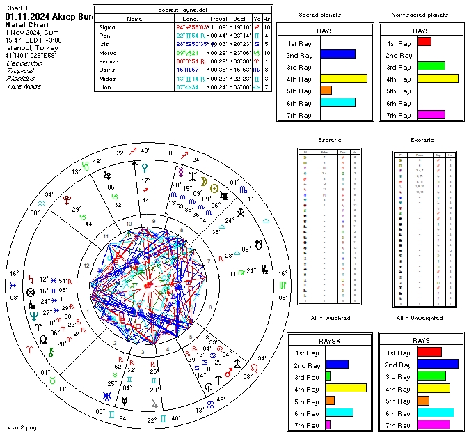 Yukarıda 1 Kasım günü Akrep burcunda gerçekleşecek olan yeniaya ait astrokartografik haritayı görmektesiniz. Harita üzerinde işaretli hatlar ve çevresi, yeniay enerjisinden belirgin etkilenmesi olası yerlerdendir.