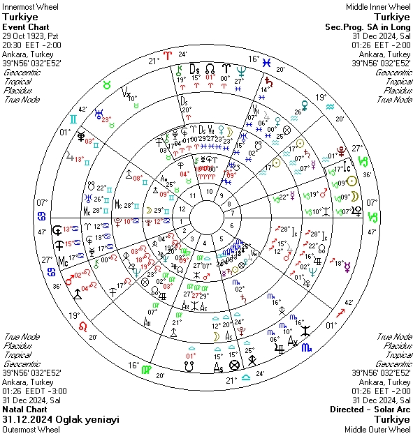 Ülkemiz Pluto’su ve Mars’ıyla etkileşimde sert bir yeniay. İkili ilişkiler dengemizi ve beraberinde iç işlerimize, güvenliğe, askeri durumlara, halkımıza zorlayıcı yansımasını anlatmakta. Mars’ın Pluto ile karşıtlığı 3 Ocak’ta kesinleşecek. Ama yılbaşı sonrası da dahil olmak üzere, şimdiden başlayarak güvenlik tedbirlerini normalinden daha sıkı tutmakta fayda görebiliriz. Teröre, patlamalara, yangınlara karşı hepimiz tedbirli olmalıyız. Ordumuzu ilgilendiren gelişmeler söz konusu olabilir.