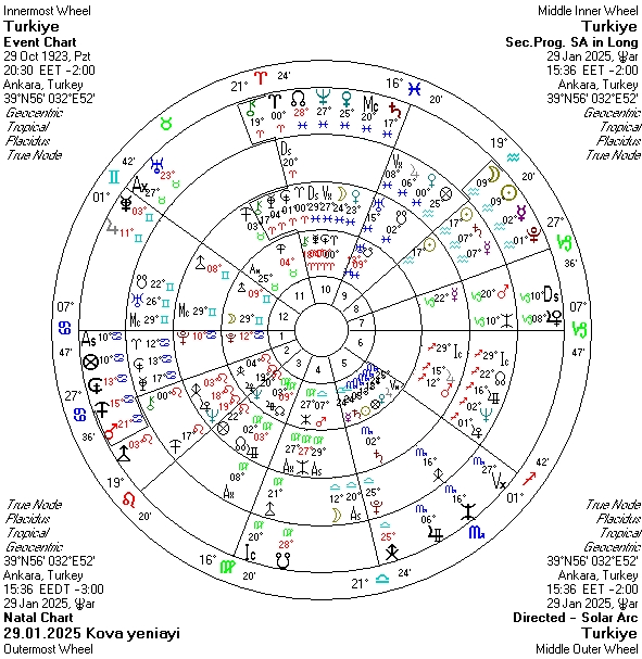 Konumunda lider, otorite olanlar, tanınmış kişiler için zorlayıcı bir yeniay. Bazı krizleri barındırmakta. Sağlık konularıyla bağlantılı olabileceği gibi yetkinliklerle, hukuksal konularla da ilişkili olabilir. Yeniayda bazı davalar üst mahkemelere taşınabilir. Ve üst mahkemelerle ilgili gelişmeleri de gözlemleyebiliriz. Mafya, terör gibi konularla bağlantılı suç unsurlarını, organize suçları konuşabiliriz. Dış ve iç ilişkiler dengesinin halkı zorlaması ve bunun içeride tansiyon yükseltmesi mümkündür. Operasyonlar olasıdır. Retro Mars’ın, ilerletilmiş Mars’ımızla yaptığı görünüm uluslararası ilişkilerde bazı sürtüşmeleri, geri adımları getirebileceği gibi güvenlik açısından da yine dikkati çekmekte. Yangınlara, patlamalara, saldırılara dikkat! Deprem olasıdır.