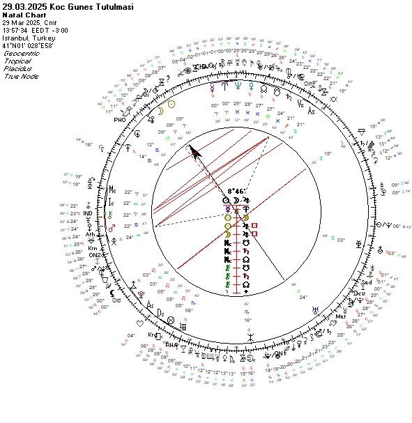 Seriyi göz ardı ettiğimizde ise 29 Mart 2006, 29 Mart 1987, 28 Mart 1968 yıllarındaki Güneş tutulmalarının yine 09° Koç civarında olduğunu görmekteyiz.
