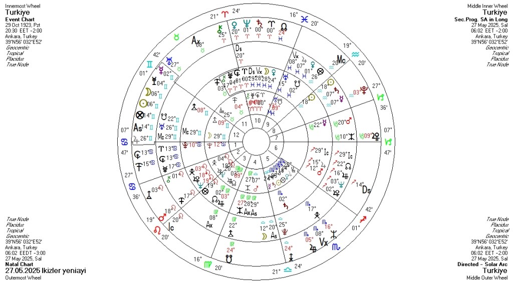 İkizler yeniayı, ülkemizin ilerletilmiş Jüpiter’ini etkilemekte. Konumunda otorite, üst düzey yöneticileri, liderleri, ceo ları kapsayacak şekilde, geri planda kalmış olaylarla karşılaşılabilinir. Bunlar finansal, hukuksal konular olabileceği gibi yurtdışı ile de bağlı olabilir. Diplomasiyi etkileyebilir. Hapishaneler, af ile ilgili gelişmeler gündemi belirleyebilir. Sürecin gündemi kapalı kapılar ardında yürüyebileceği gibi şartların kontrolü de kolay olmayabilir. Çok fazla görüşme, konuşma, pazarlık yapılabilir. Fakat şartların değişkenliği, sonuca ulaşmayı zorlaştırabilir.