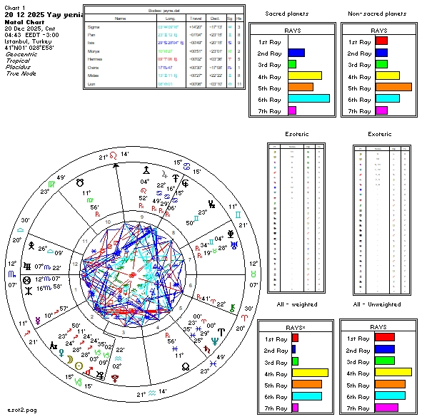 Yay yeniayı, bu yılın iki Ay tutulmasının konularını aktifleştirmekte. Dolayısıyla hem görüşmeler, anlaşmalar hem de finansal, hukuksal, diplomatik konular yeniden vurgulanmakta. Baştan ayağa siyasi arenayı içine katarken, ülkemizi, topraklarımızı da ilgilendirmekte.