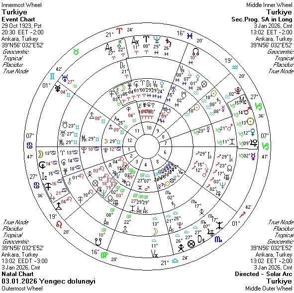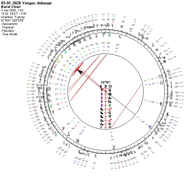 Hatırlarsanız 2026 yılına girmeden önce transit Mars’ın ülkemiz haritası ile yaptığı görünümlere dikkat çekmiş ve bu enerji ile yıla giriş yapacağımızdan bahsetmiştim. Yengeç dolunayı ile beraber hareket eden Mars’ın devam eden kritik görünümleri bizim açımızdan açık düşmanlıkların olabileceğinin işaretçisi. Güvenlik sorunlarını verebilir. Dolayısıyla halkı, topraklarımızı etkileyebilecek terör, patlama gibi olaylara karşı tedbirli olmaya devam ediyoruz. Aynı zamanda halk içinde tansiyonun yükselebileceği her türlü olay da olasıdır. Ufak görünen durumların düşünülenin ötesinde büyümesi olasıdır. Güvenlik açısından devam edersek sadece Mars değil transit Merkür’de dolunayın ardından sert görünümler yapacak. Daha önceden hazırlanmış ve farkına varılamayan, kontrolü zor planlar, olaylar bu dolunayda karşımıza gelebilir. Geçtiğimiz Yay yeniayında, kritik noktalarda düşmüş ihalar bulunmuştu. Yine teknolojik aletlerle bağlantılı durumlar söz konusu olabileceği gibi bu dolunayda komşu ülkelerle ilişkileri de zorlayıcı faktörler arasına katabiliriz. Silahlı grupların ülkemize yönelik faaliyetlerinin olasılığını göz ardı etmemekte fayda olabilir. Operasyonlar devam edebilir. Yer hareketliliği yaşanabilir. Kazalara, petrol, Petro kimya ürünleri kaynaklı durumlara dikkat. Mavi vatanı ilgilendiren gelişmeler olasıdır.