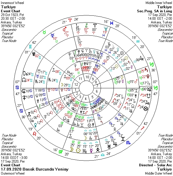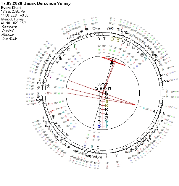 Tutulma ülkemiz haritasının Mars’ı üzerinde olmakta ve güvenlik konularını işaret etmekte. Bu dönemde güvenlik güçlerimizle ilgili konular oldukça öne çıkabilir.  Yeni operasyonlar olabileceği gibi içeride halkı da ilgilendirebilecek, zorlayabilecek gelişmeler olasıdır. Bu noktada kargaşaya, teröre, suikaste, güvenliği dikkat etmekte fayda olabilir. Açık düşmanlıklarla karşı karşıya kalabiliriz. Diplomasinin rahat akmayacağı ya da kapalı kapılar ardında yürütüleceği görünen bu dönemde başka ülkelerle ilişkilerde, finansal anlaşmalarda ki bunlar hem borçlanmayı hem de savunma sanayini ilgilendiren durumlar olabilir, şartlar beklendiği gibi olmayabilir. Konumunda otorite olanların davaları, eski görüşmeleri, anlaşmaları gündem olabilir. Tutulma siyasi arenadaki hareketliliği de arttırmakta. Partiler arası geçişler hız kazanabileceği gibi bu hareketlilik konumunda otorite olanlarla ilgili değişimlere, yönetimlere de yansıyabilir. İllegal yapılanmalar ve bunlarla ilgili gelişmeler görülebilir. Bankaları, finans kurumlarını ilgilendiren beklenmedik  durumlar yaşanabilir. Kredi, vergi, sigorta vs oranlarında değişimler beklenebilir. Corona salgını devam ederken hastaneler, halkın sağlığı gündemimizden düşecek görünmemekte. Tedbirleri gevşetmemekte fayda olabilir. Zira sonbaharla vaka sayısında daha da artış gözlemlenebilir ki bu harita sağlık sektörünün desteğe ihtiyacını da bizlere göstermekte. Tutulma yer hareketlerindeki artışı da tetikleyebilir. Doğu Akdeniz, doğalgaz, petrol konuları, Libya  ve Mısır ile oluşabilecek durumlar dikkati çekmeye devam edebilir.  Yunanistan ile yapılan eski görüşmeler, anlaşmalar, haberler gündemi etkileyebilir.